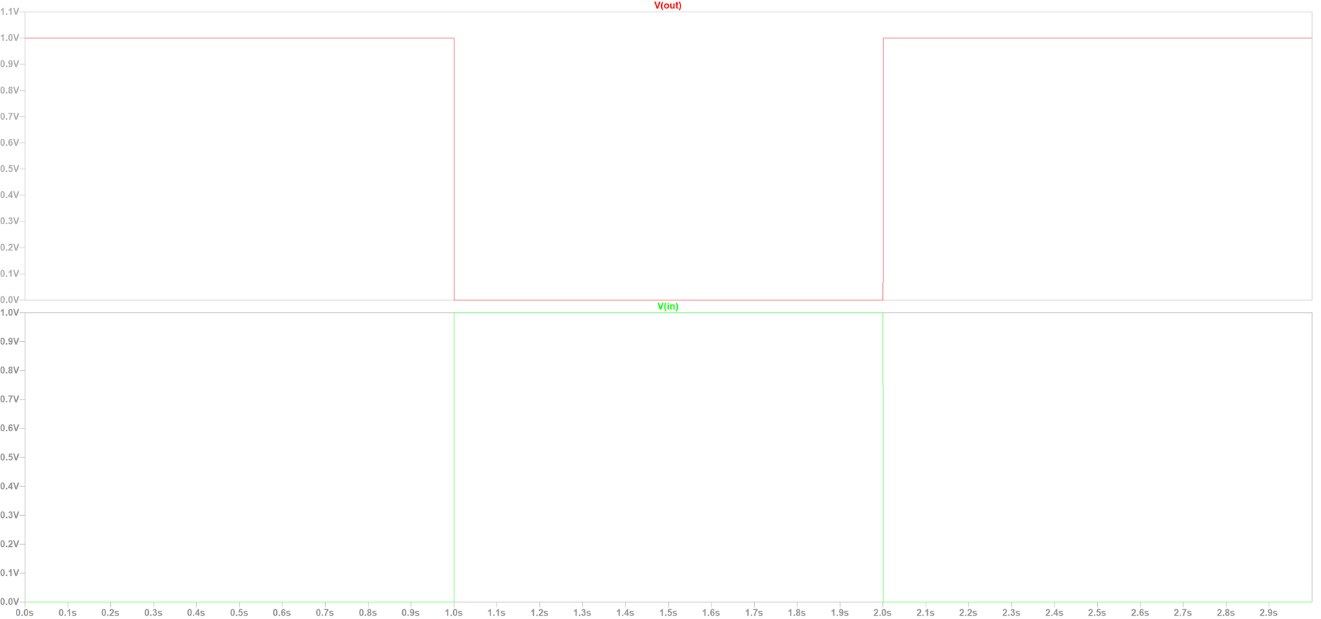 CMOSトランジスタによるNOT回路、別名インバータの動作を見てみます。