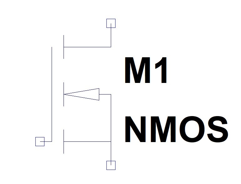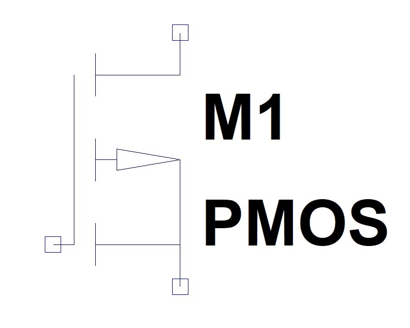半導体集積回路上でもっとも多く利用されるMOSトランジスタは2種類に分類できます。 NMOSトランジスタです。 PMOSトランジスタです。シンボルを見ても矢印の方向が違うだけです。シンボルは他にも書き方がありますが、矢印の向きでどちらなのか判別できるようにしてください。
